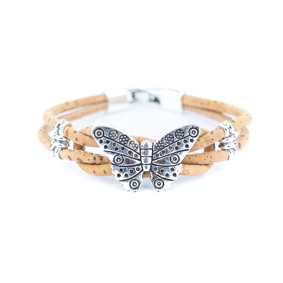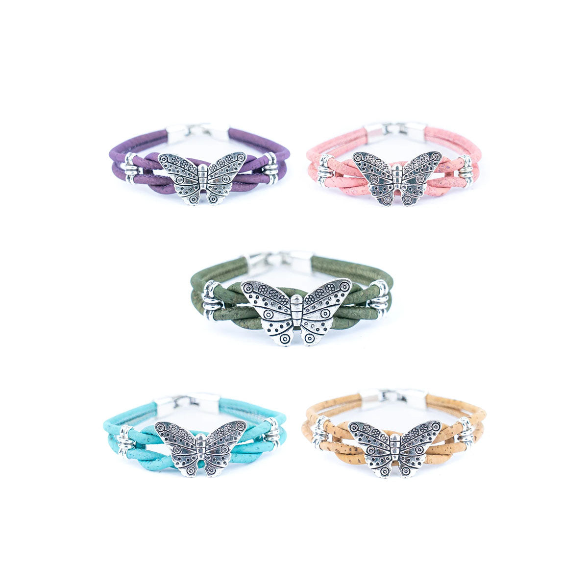 Pillangós parafa karkötő több színben - könnyű, környezetbarát és stílusos kiegészítő minden alkalomra. A vidám pillangóminták játékos hangulatot kölcsönöznek, miközben a természetes parafa anyag kényelmes viseletet biztosít egész napra.