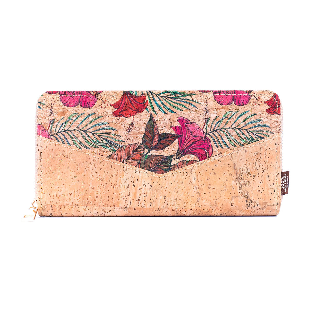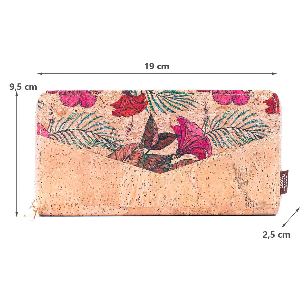 Gyönyörű, virágmintás parafa pénztárca, a természetes megjelenést kedvelő hölgyek részére.