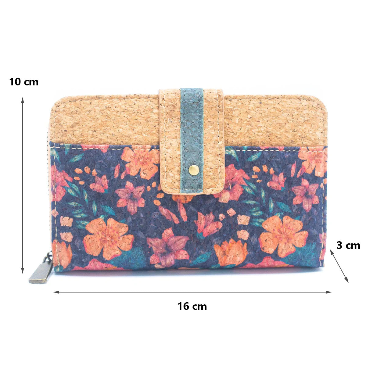 Virágmintás parafa női pénztárca – környezetbarát, könnyű és tartós kiegészítő, amely minden női táskában stílusosan mutat.